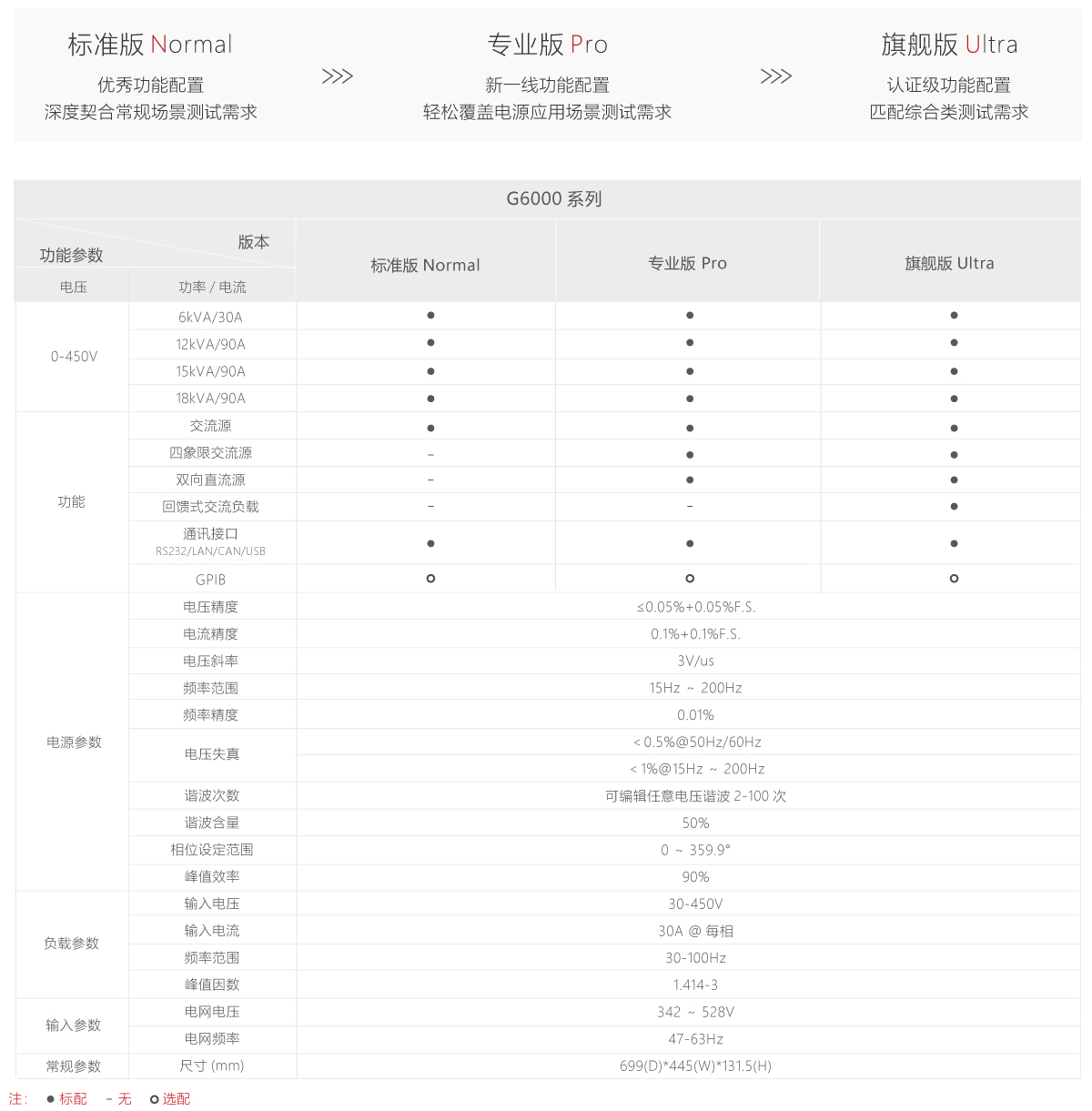 G6000系列是一款高精度、高功率密度、高动态的四象限交流源载系统,作为源,支持三相独立可调,具备LIST/PULSE/STEP等多种编程功能,模拟电网电压和频率的扰动特性;具备波形编辑、谐波模式、间谐波等模式,模拟异常电网环境,测试被测试设备的电网耐受能力;作为载,内置多种交流负载模型,模拟线性负载特性。 G6000系列可编程双向交流源载系统广泛覆盖光储、新能源汽车、交直流充电桩、科研机构、高等院校等测试领域。