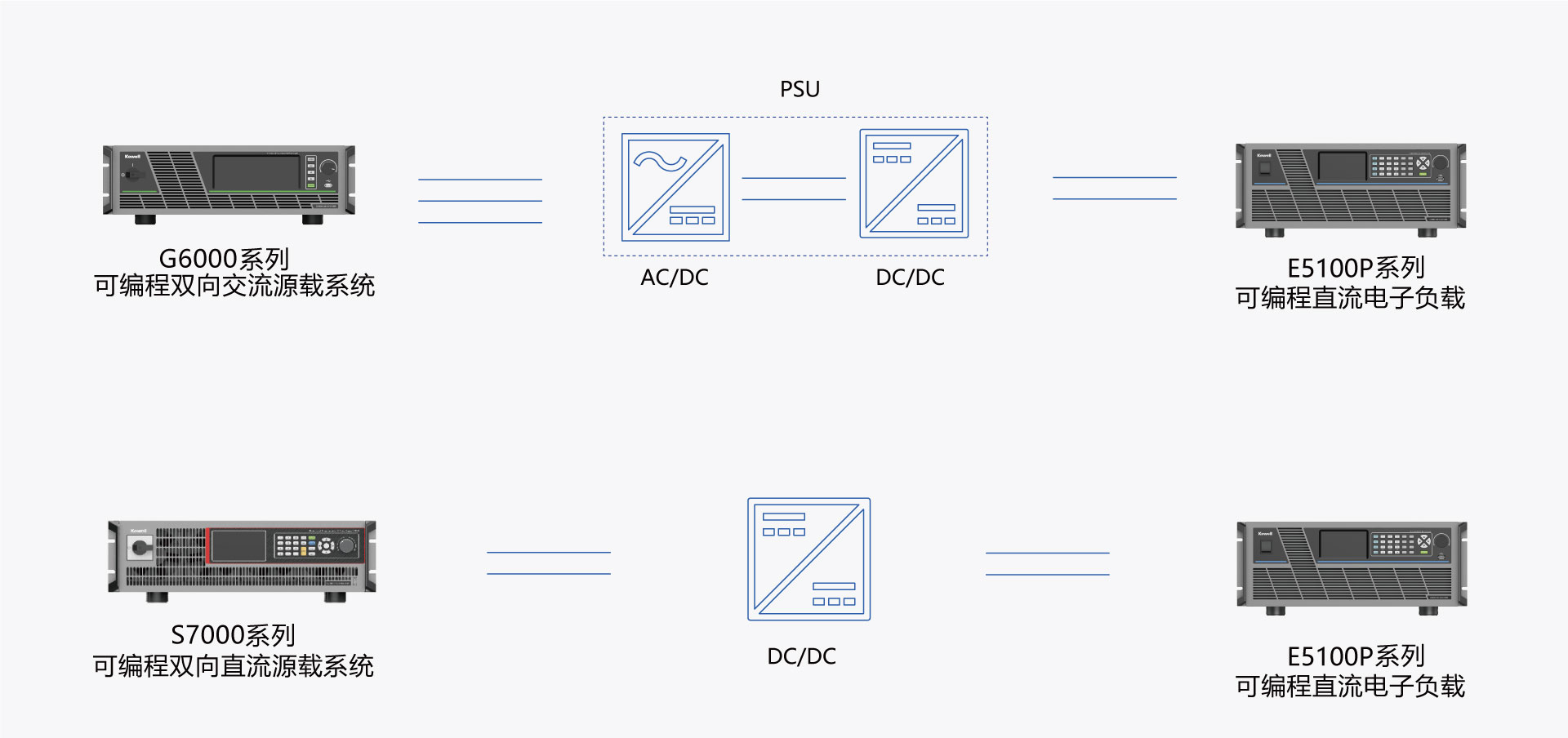 PSU(电源供应单元)作为服务器的关键供电部件,其性能直接影响到系统的稳定性和可靠性。PSU通常为服务器内各关键器件提供稳定的直流供电,具备高效率、高动态响应、低纹波、过压/过流保护等功能,广泛应用于数据中心、云计算平台、网络通信等领域,确保设备在不同工况条件下稳定运行。针对系统中的PSU测试,科威尔提供一套集高精度、高动态响应、高可靠性于一体的测试解决方案。