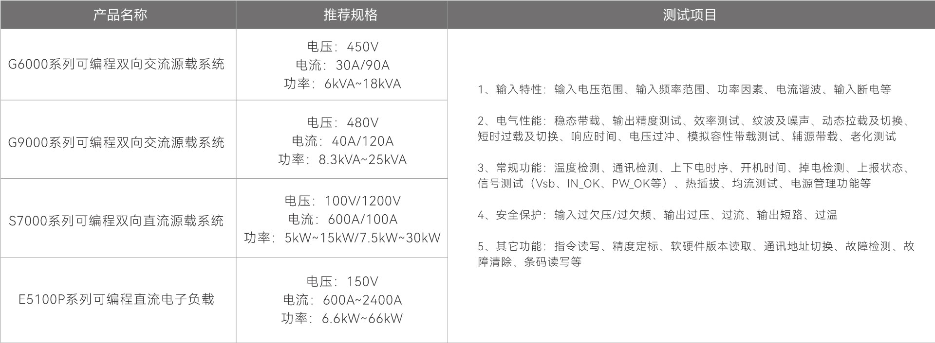 直流输出侧支持高控制精度,高动态调节能力,可模拟不同负载大小条件下的工作状态;输入侧支持不同电压及频率下的电网模拟以及异常电网状态下的模拟等功能,能够全面验证PSU在多应用环境下的性能表现。此外,该解决方案还具备通讯测试、时序测试、信号测试等,确保PSU在复杂工况下仍能安全、稳定运行,满足系统对电源设备的高要求。