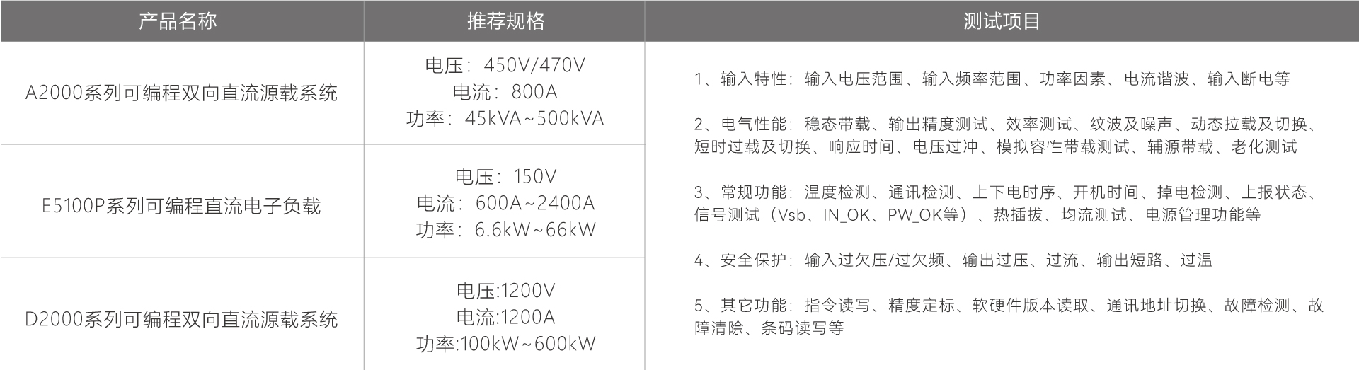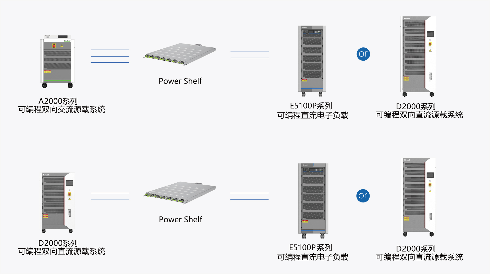 针对Power Shelf的测试,科威尔推出一套集高精度、高动态响应、高可靠性于一体的测试解决方案。直流输出侧支持高控制精度,高动态调节能力,可模拟不同负载大小条件下的工作状态;输入侧支持不同电压及频率下的电网模拟以及异常电网状态下的模拟等功能,能够全面验证Power Shelf在多应用环境下的性能表现。此外,测试方案还支持短路、过载等故障模拟,确保Power Shelf在高压直流环境下安全稳定运行,满足数据中心和通信基站对电源设备的严苛要求。