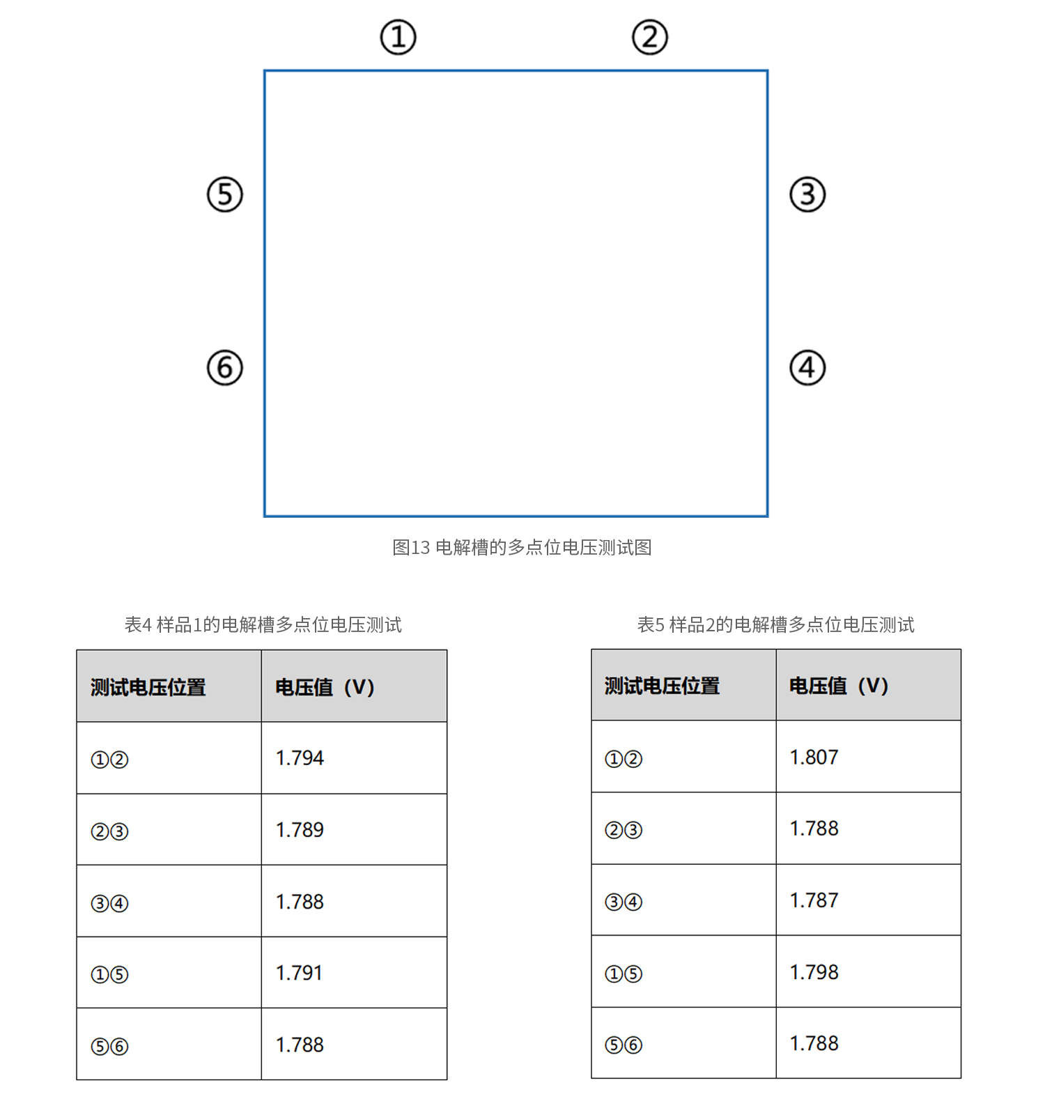 · 长时间运行与多点位电压监测,用于考察完好与破损单池的长时间运行稳定性及电压分布的差异性。